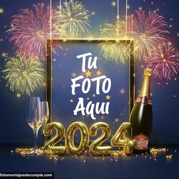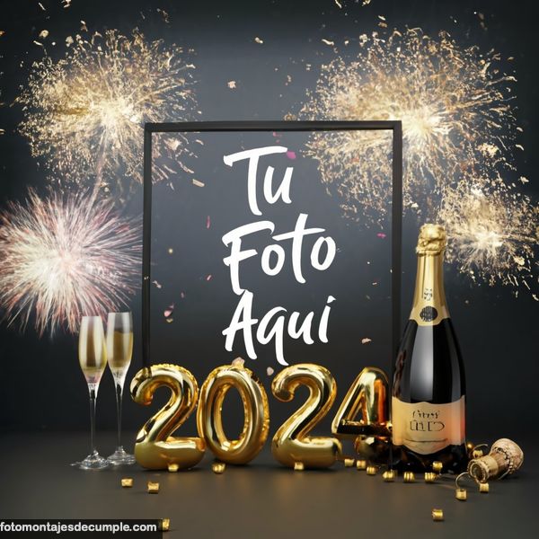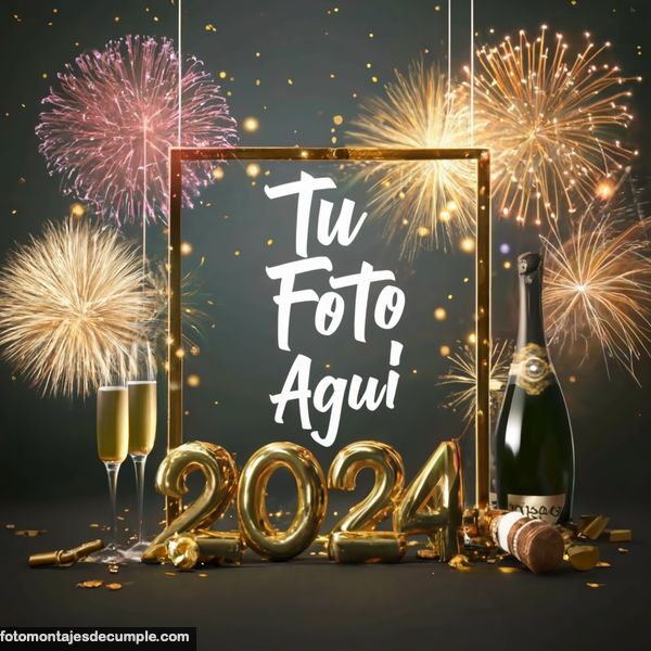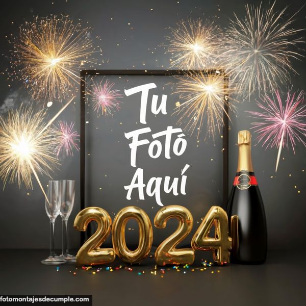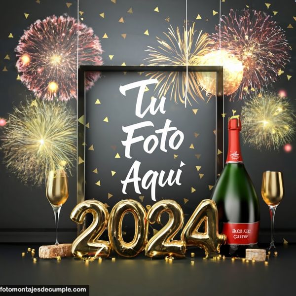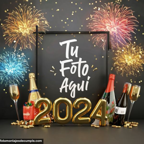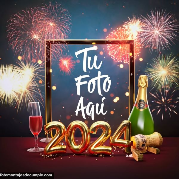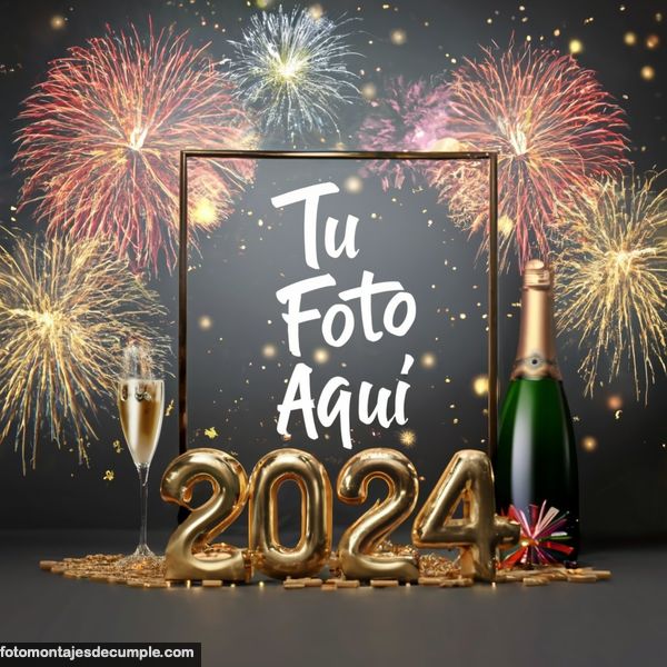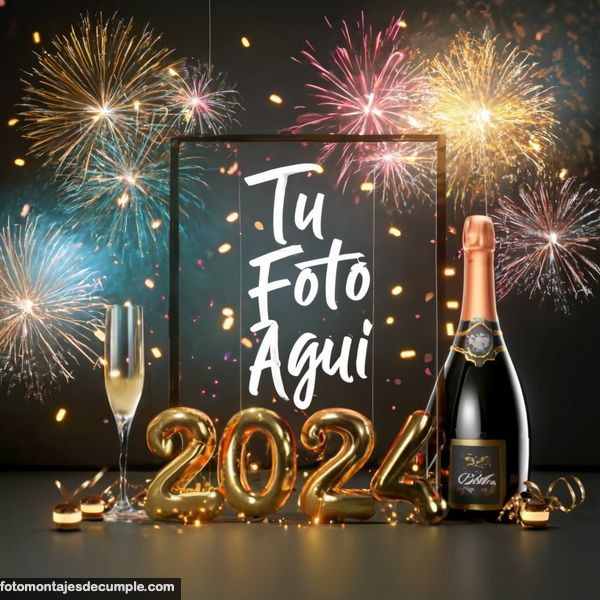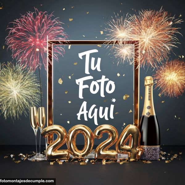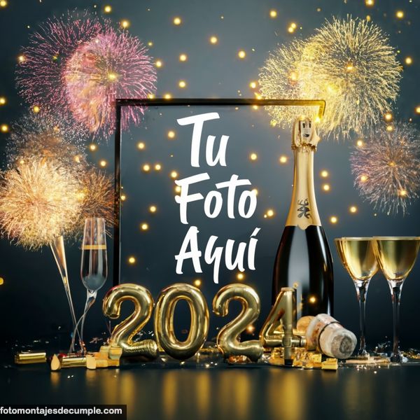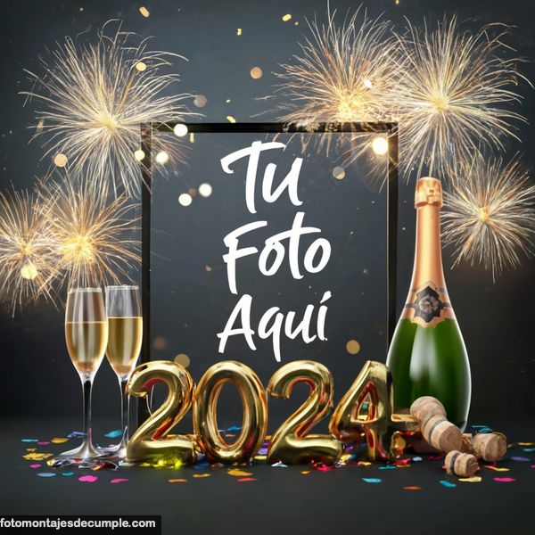 En total son 25 diseños distintos, todos muy hermosos con decoraciones festivas como fuegos artificiales de colores, botellas de champagne y copas de brindis, mucho confeti de color dorado y el año 2024 en grande y dorado. Lo único que tienen que hacer para poner su foto es entrar en los enlaces debajo de cada diseño y allí subir la foto.