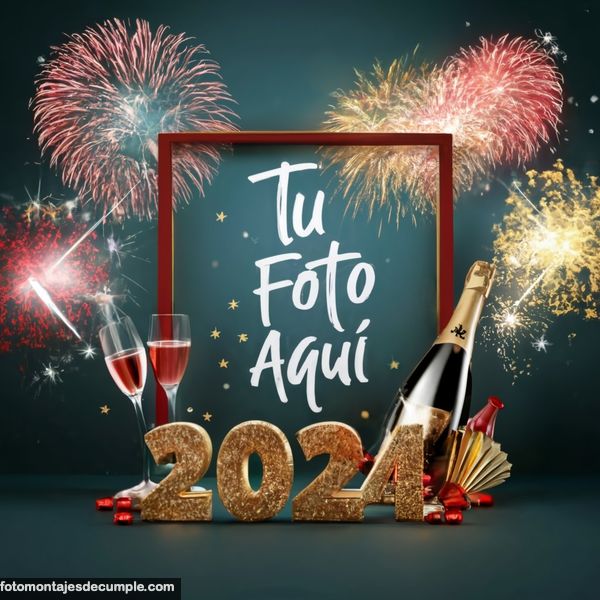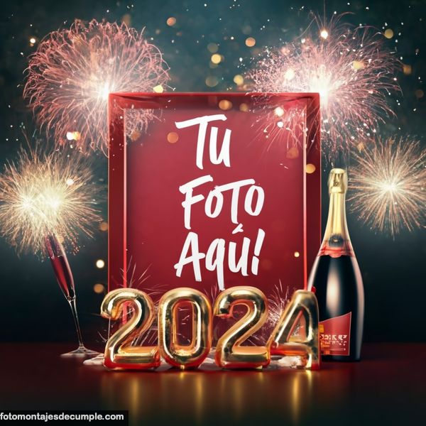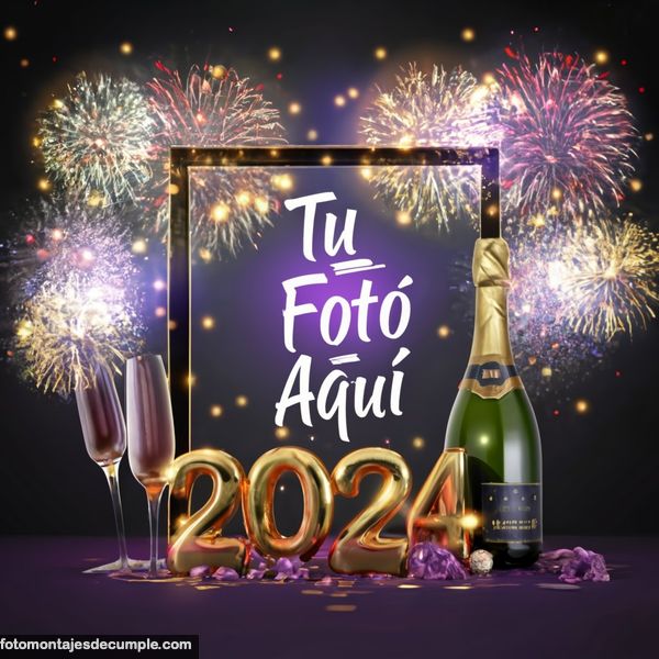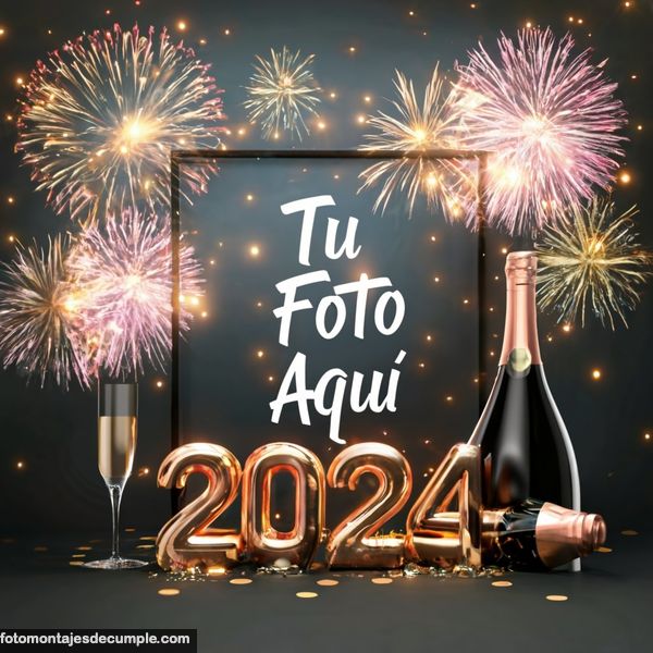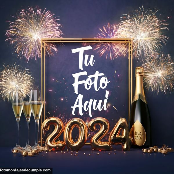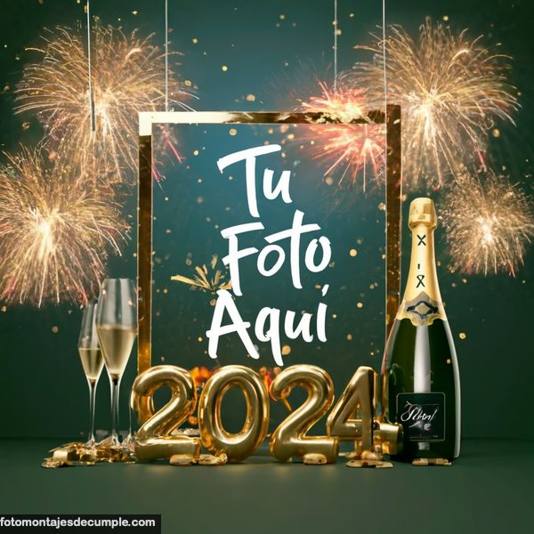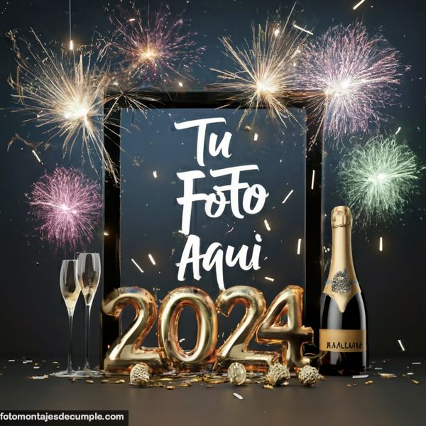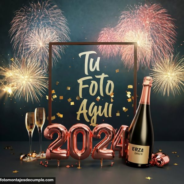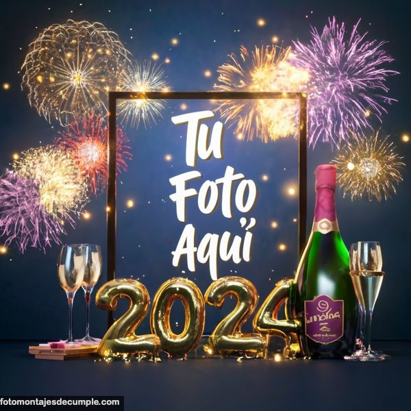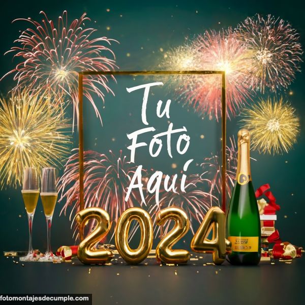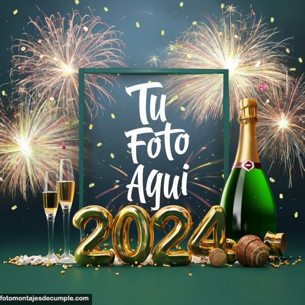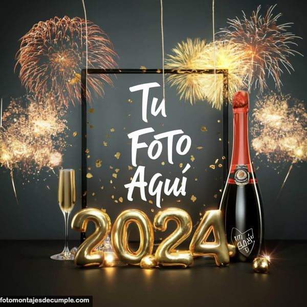 En total son 25 diseños distintos, todos muy hermosos con decoraciones festivas como fuegos artificiales de colores, botellas de champagne y copas de brindis, mucho confeti de color dorado y el año 2024 en grande y dorado. Lo único que tienen que hacer para poner su foto es entrar en los enlaces debajo de cada diseño y allí subir la foto.
