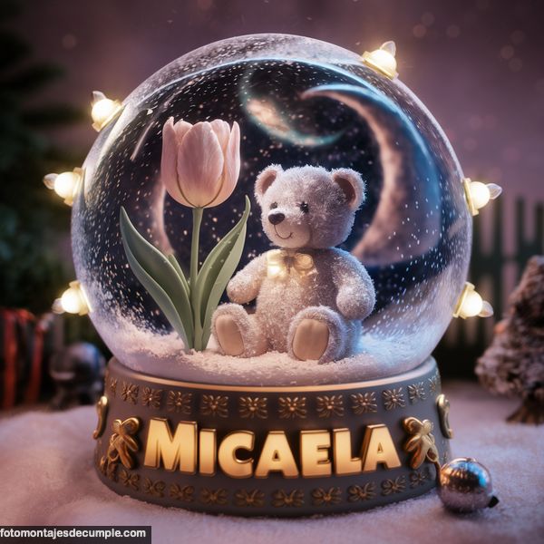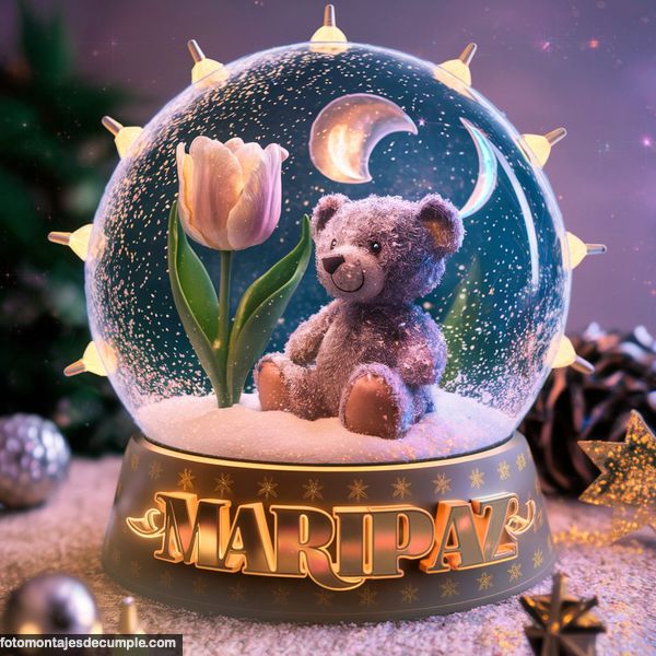 Hoy queremos dejarles un nuevo diseño de imágenes de nombres de mujer 3D con un modelo realmente hermoso que seguramente les va a encantar. Se trata de un osito de peluche muy tierno que está dentro de una esfera de cristal y debajo sale el nombre en color dorado con luminosidad.