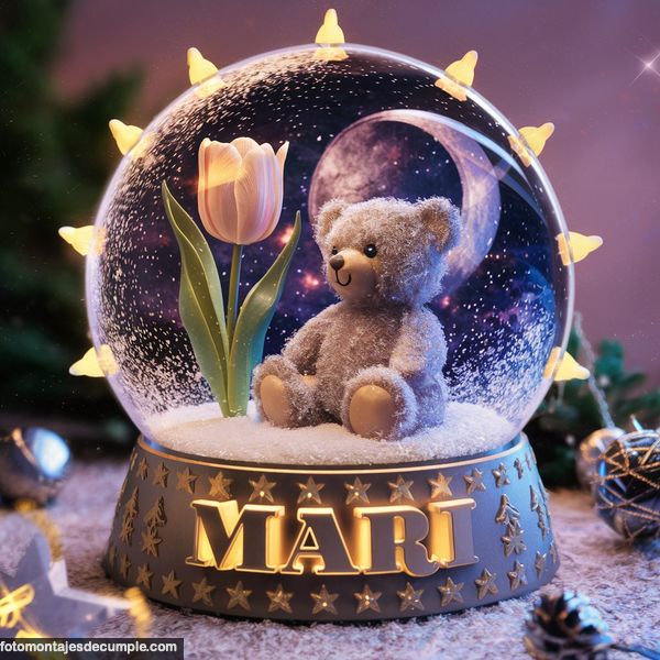 Imágenes con nombre 3D para mujeres - Osito de peluche en esfera de cristal