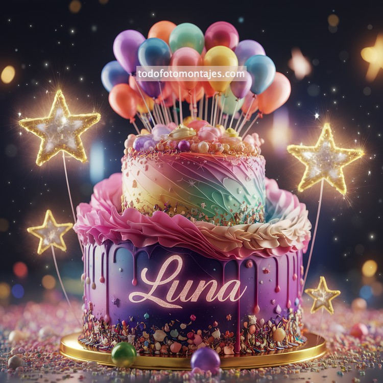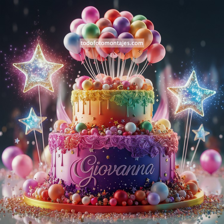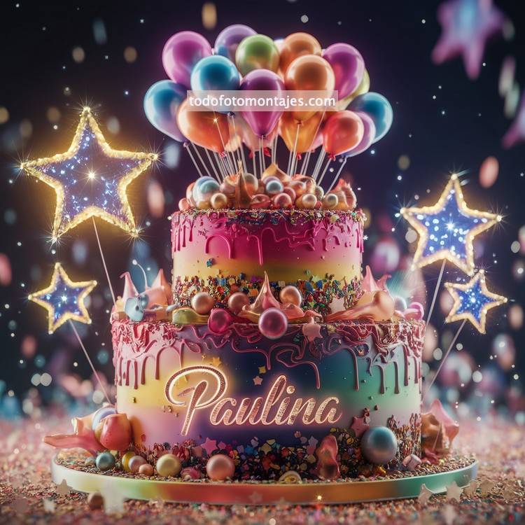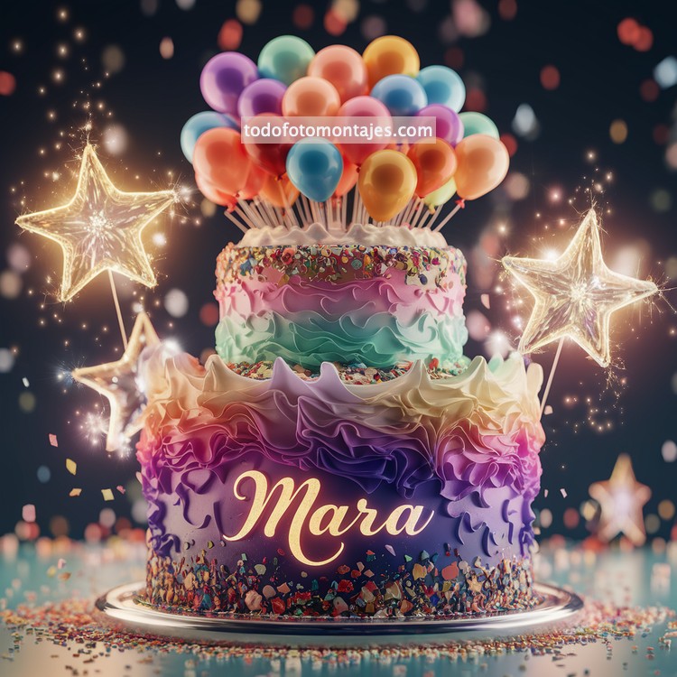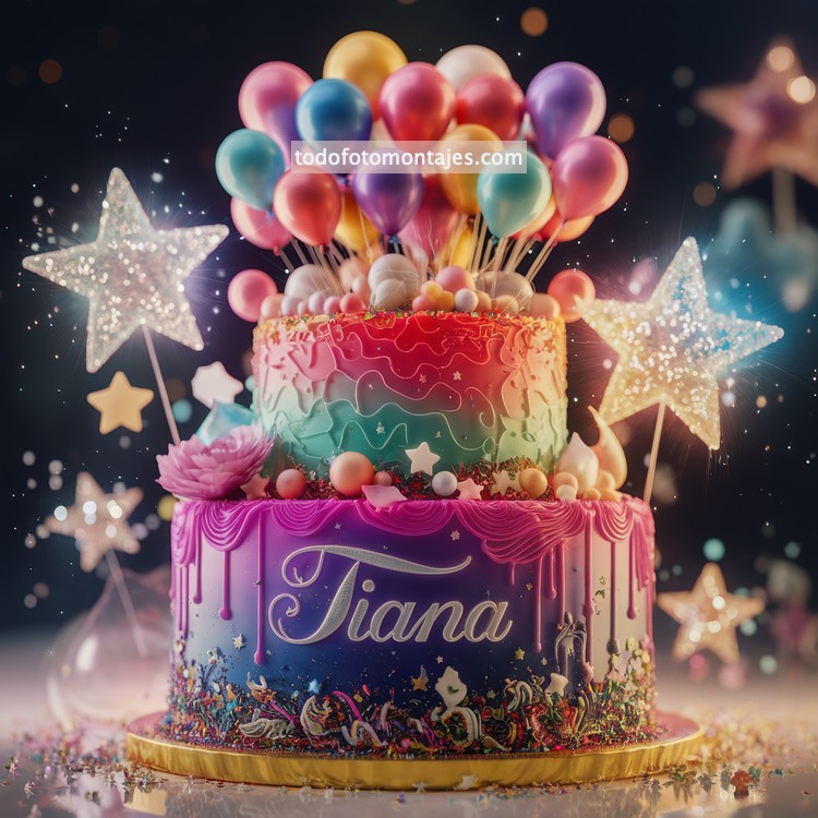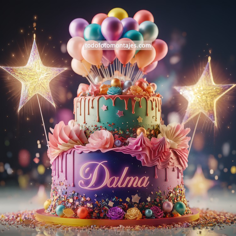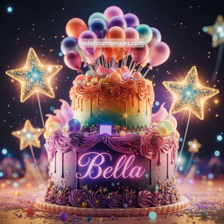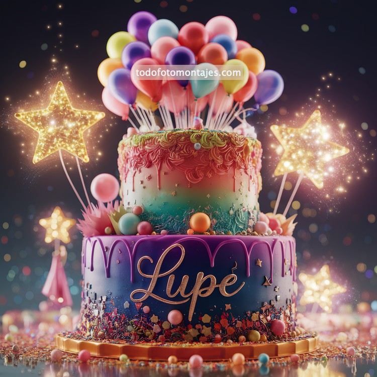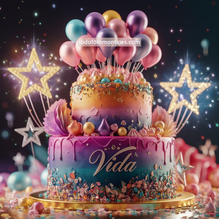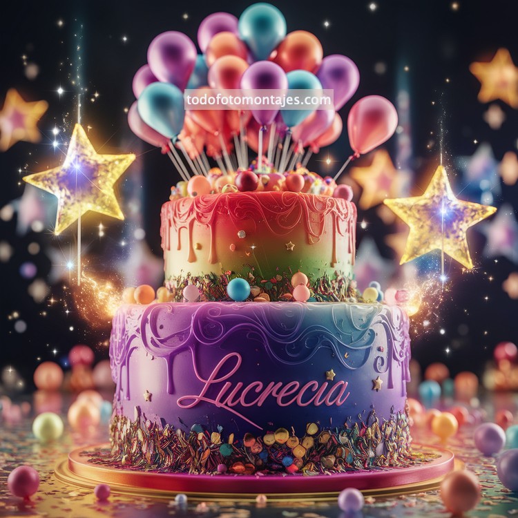 Celebrar un cumpleaños siempre es un momento especial, y qué mejor manera de hacerlo que con una hermosa imagen personalizada con nombres de feliz cumpleaños para mujer. En este diseño, el gran protagonista es un pastel decorado con estrellas y flores, creando un ambiente lleno de color y dulzura.