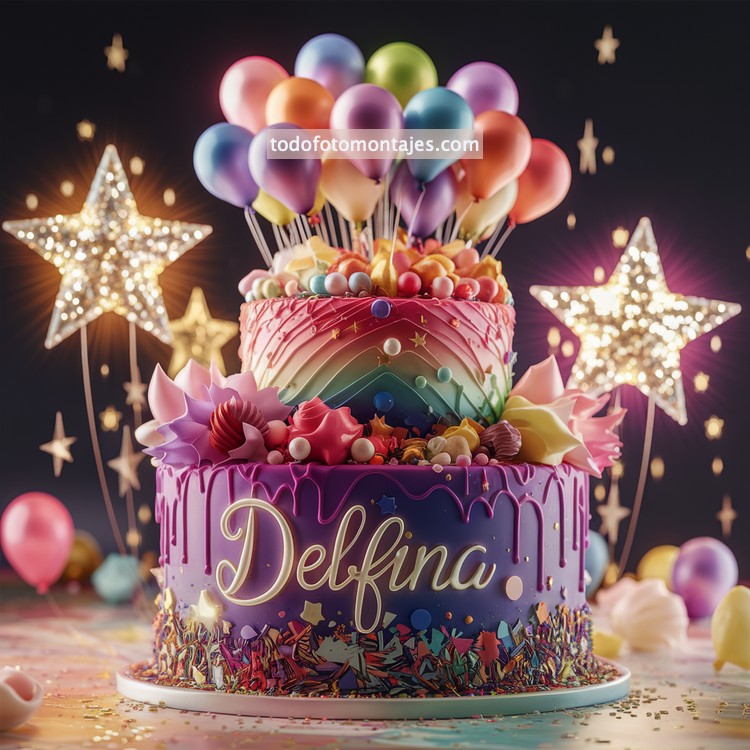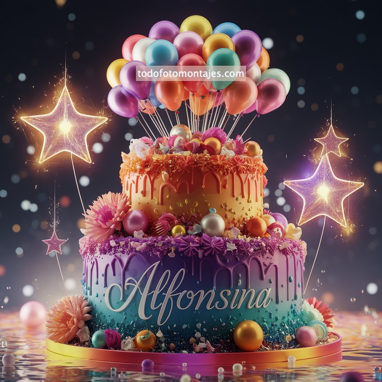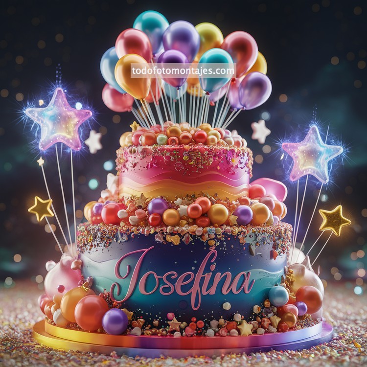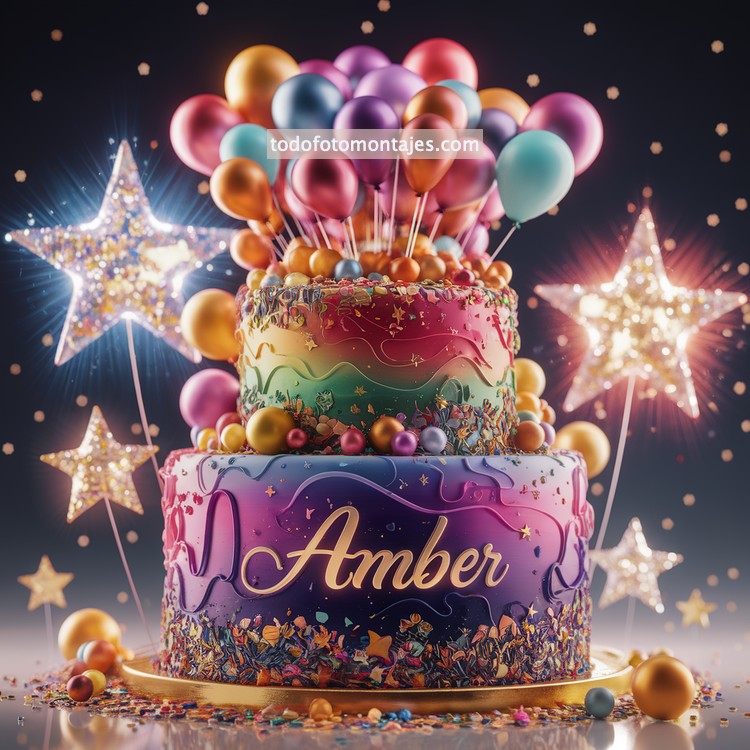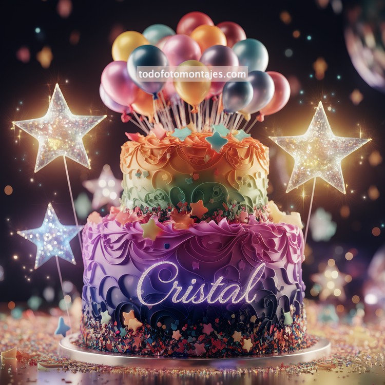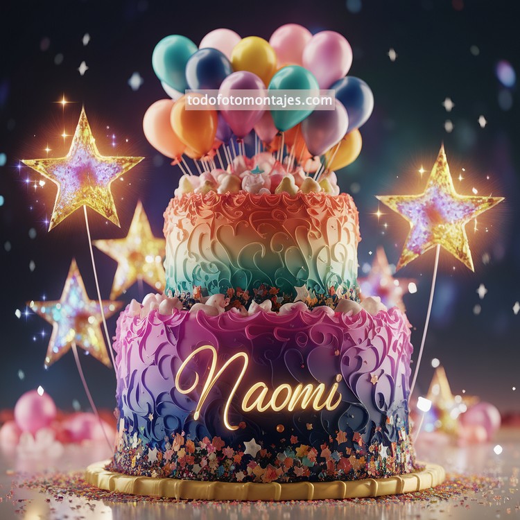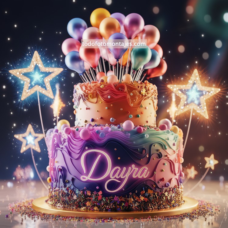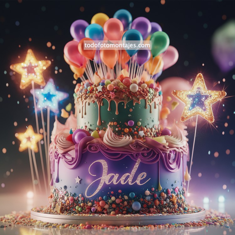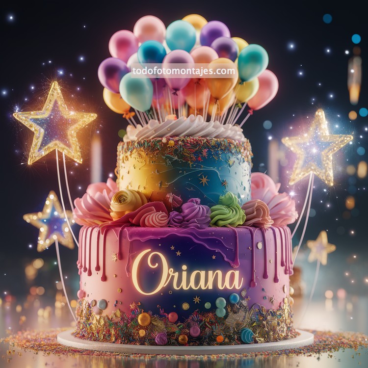 Celebrar un cumpleaños siempre es un momento especial, y qué mejor manera de hacerlo que con una hermosa imagen personalizada con nombres de feliz cumpleaños para mujer. En este diseño, el gran protagonista es un pastel decorado con estrellas y flores, creando un ambiente lleno de color y dulzura.