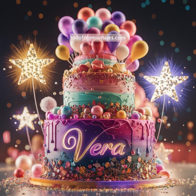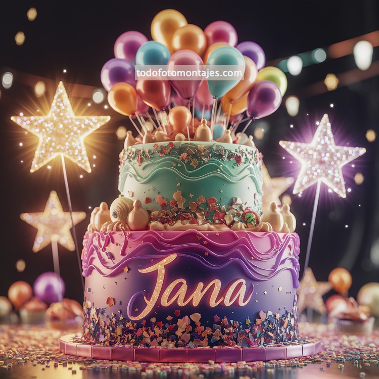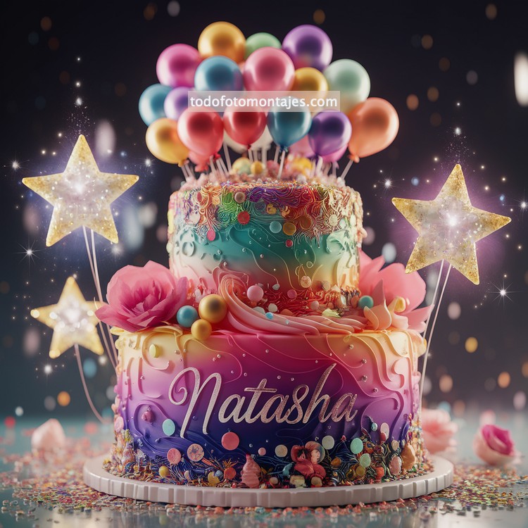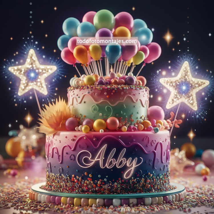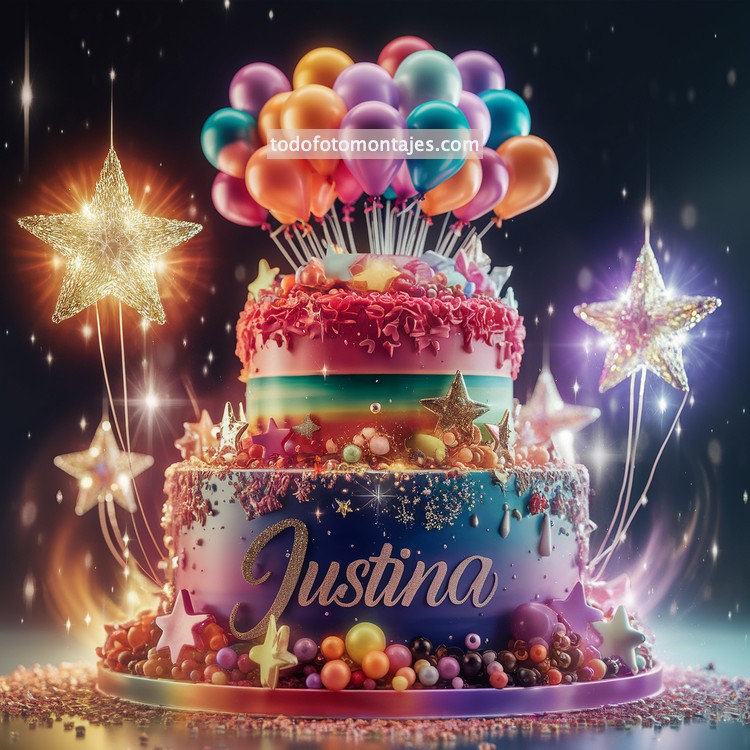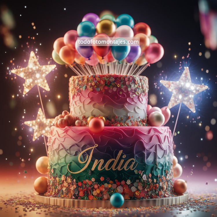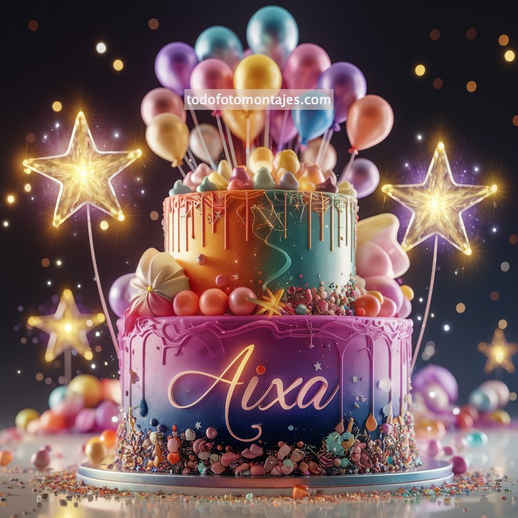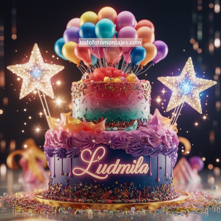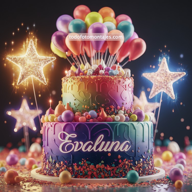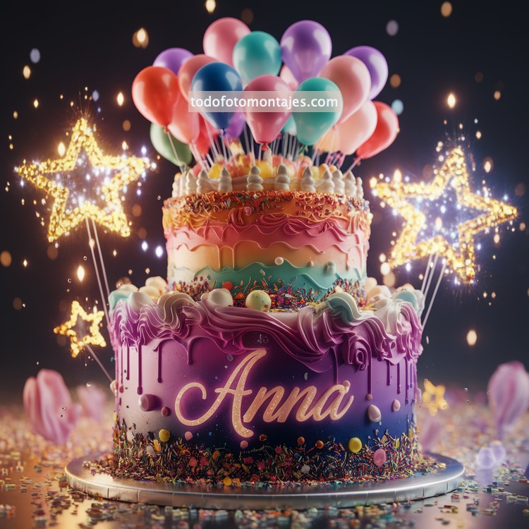Celebrar un cumpleaños siempre es un momento especial, y qué mejor manera de hacerlo que con una hermosa imagen personalizada con nombres de feliz cumpleaños para mujer. En este diseño, el gran protagonista es un pastel decorado con estrellas y flores, creando un ambiente lleno de color y dulzura.