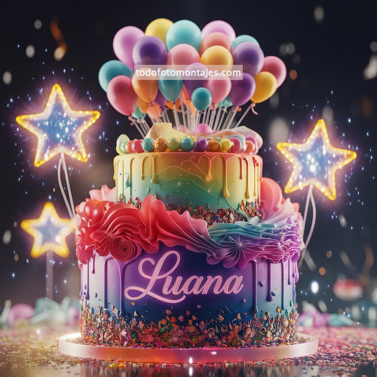 Lo que hace que estas imágenes sean únicas es el detalle especial del nombre escrito en color neón, resaltando de manera mágica sobre el pastel. Este toque luminoso le da un estilo vibrante y festivo, ideal para compartir en redes sociales o enviar a esa persona especial en su día.