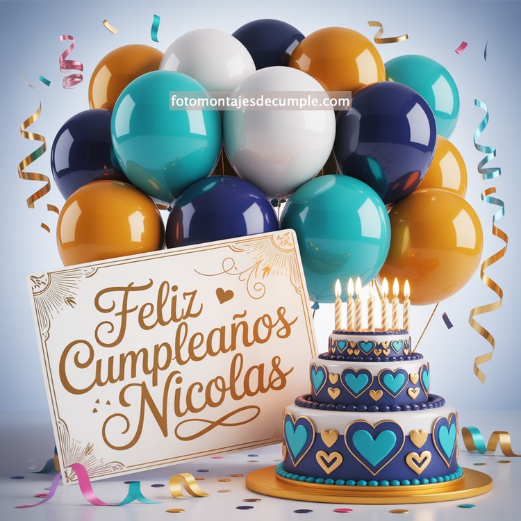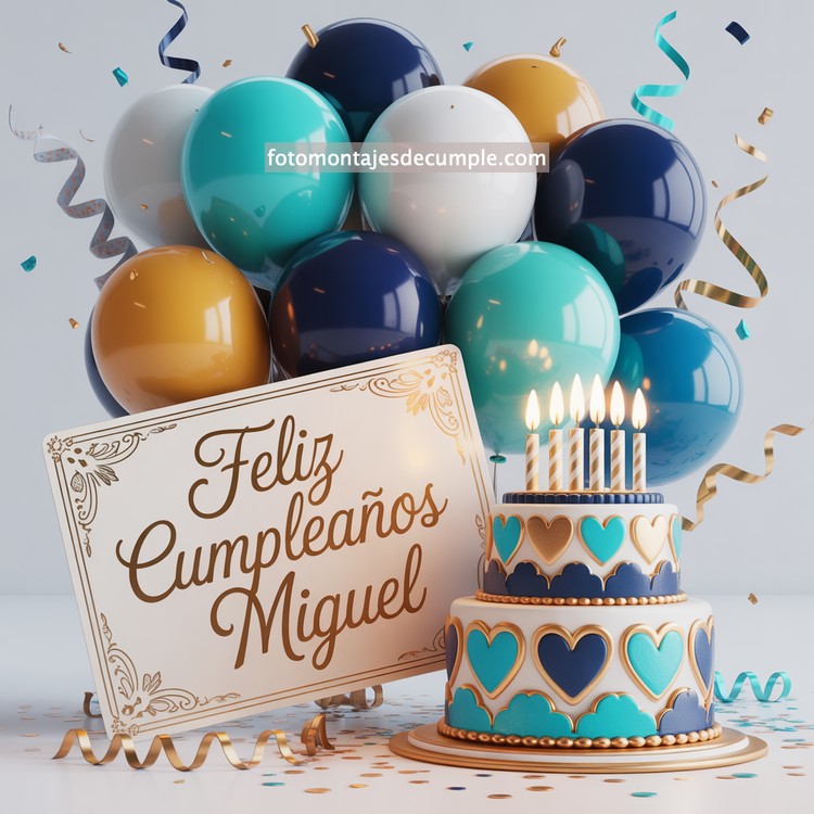 Si lo que buscas es sorprender con imágenes de cumpleaños con nombre de hombre que transmitan elegancia y estilo, este diseño en tonos azul oscuro y turquesa es simplemente espectacular. La combinación de estos colores crea una atmósfera moderna, sofisticada y muy atractiva, ideal para celebraciones masculinas con un toque especial.
