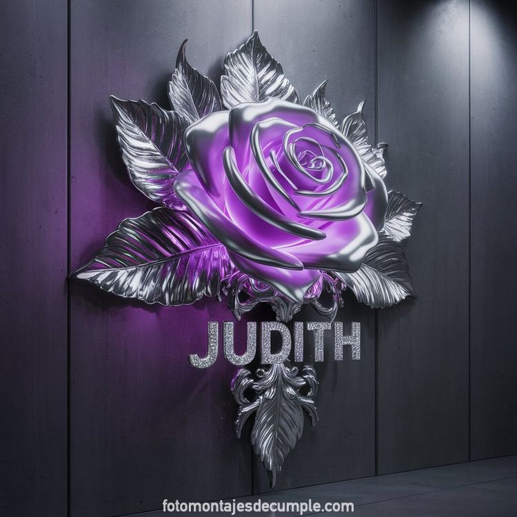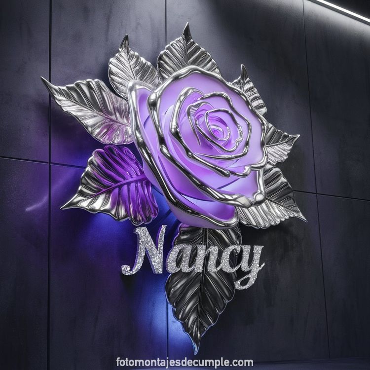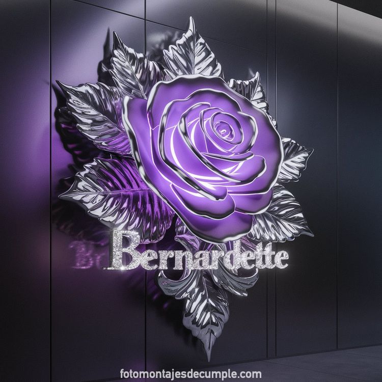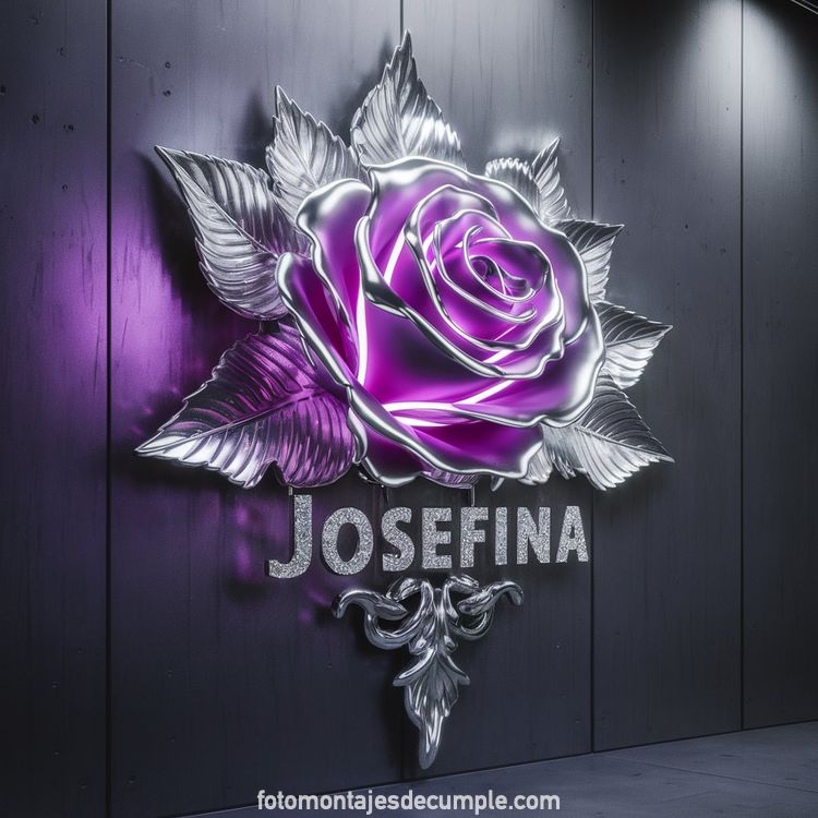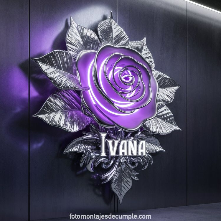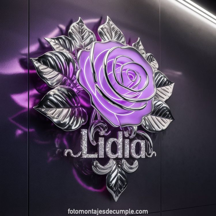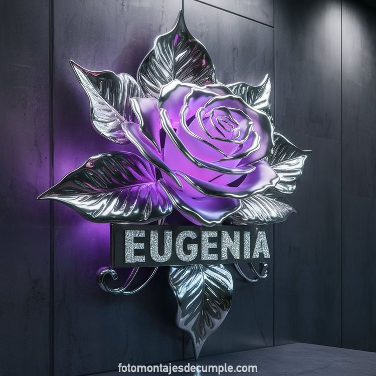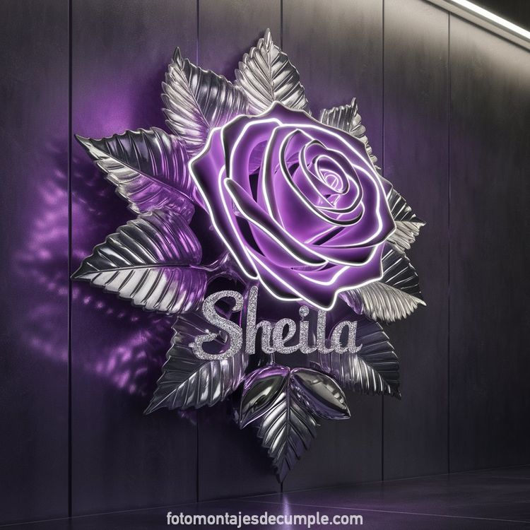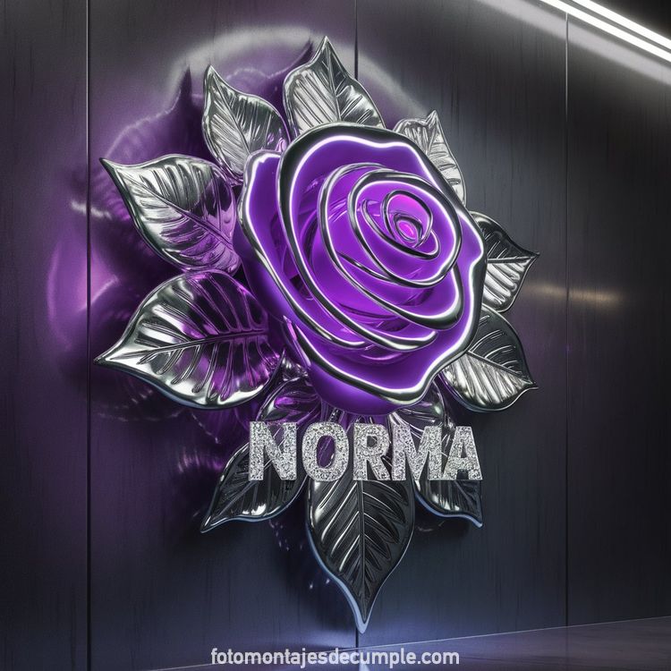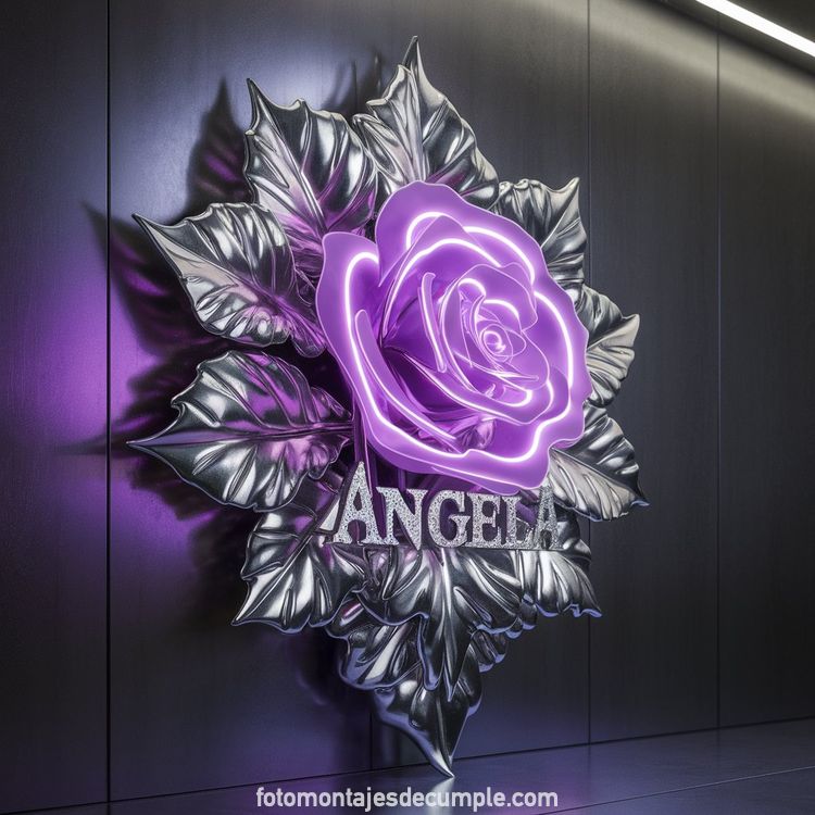 Seguimos sumando más diseños de imágenes con nombres de mujer personalizados. Y en esta oportunidad queremos compartirles este nuevo modelo con un diseño elegante y sofisticado. Tiene una rosa en 3g muy grande en color violeta luminoso con plateado sobre la pared. Debajo de la rosa está escrito el nombre en letra color plateado con brillos.